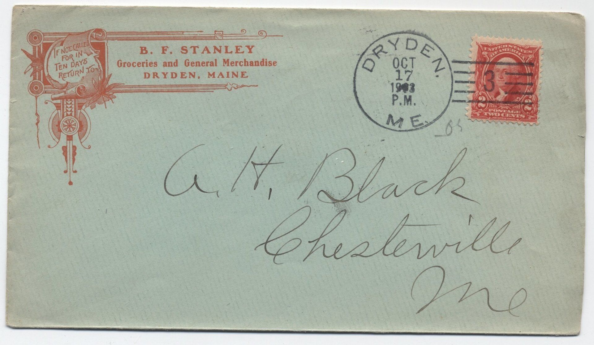 Doanes were used in all 50 states, as well as in Samoa, the Canal Zone, and perhaps other places. Their heaviest use coincides with the early 20th-century postcard craze, but finding nice examples on cover can present a significant challenge. Because Doanes were used at small post offices, many of those offices are now discontinued.