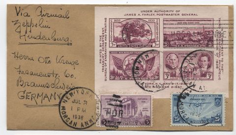 zeppelin airmail cover from New York to Germany - intended for the May 6, 1937